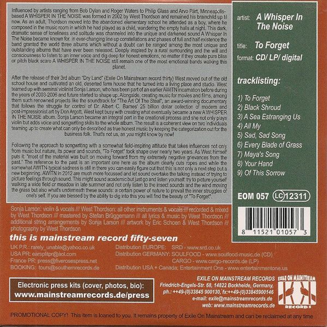 A Whisper In The Noise – To Forget Audio CD