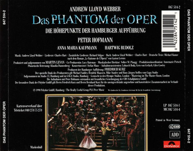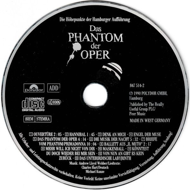 Andrew Lloyd Webber ‎– Das Phantom Der Oper (Die Höhepunkte Der Hamburger Aufführung) Audio CD