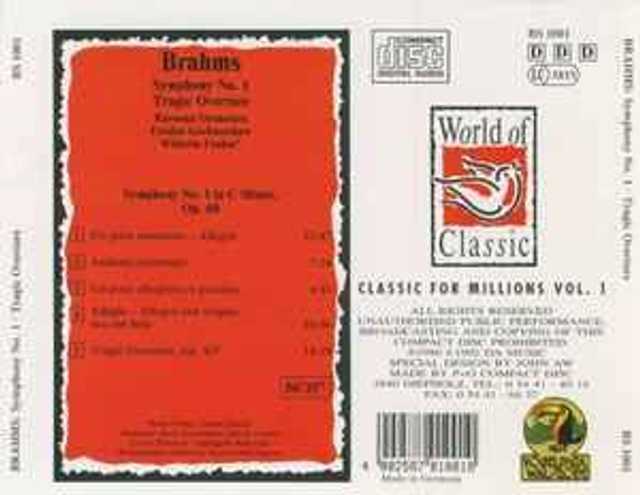 Brahms* – Symphony No. 1 / Tragic Overture Audio CD