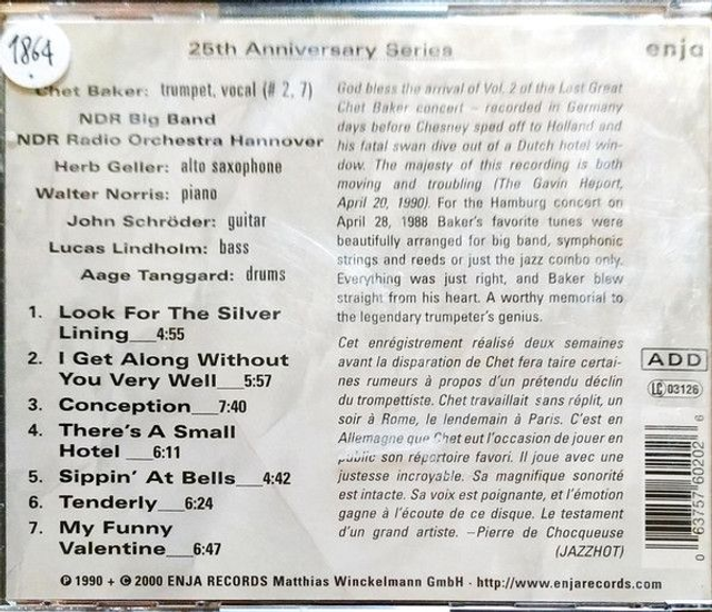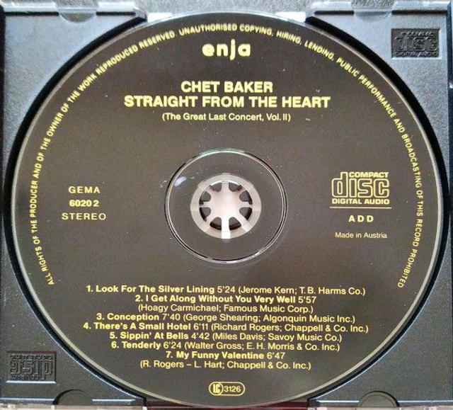 Chet Baker ‎– Straight From The Heart - The Great Last Concert, Vol. II Audio CD