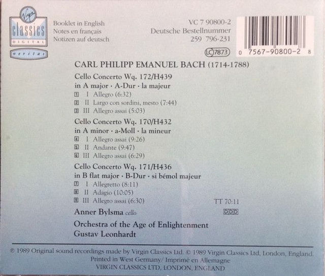 CPE Bach*, Anner Bylsma, Orchestra Of The Age Of Enlightenment,Gus Audio CD Sehr Zustand