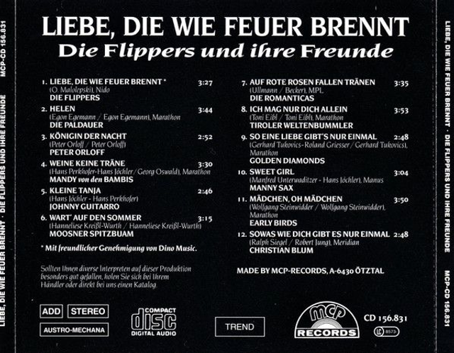 Die Flippers Und Ihre Freunde ‎– Liebe, Die Wie Feuer Brennt Audio CD