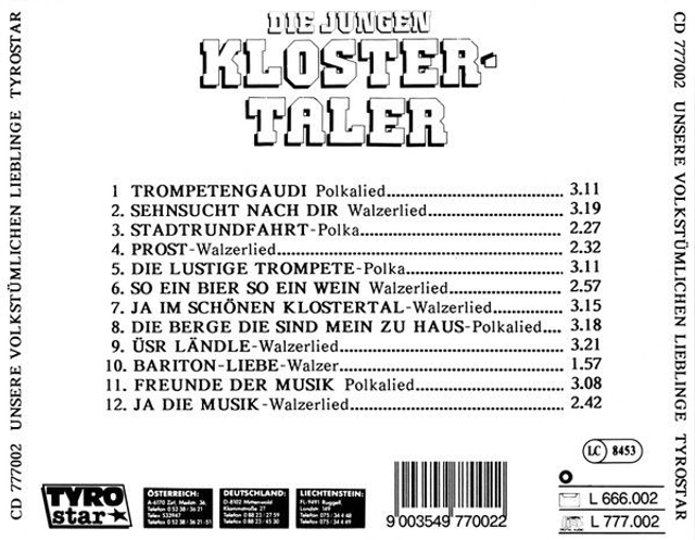 Die Jungen Klostertaler ‎– Unsere Volkstümlichen Lieblinge Audio CD