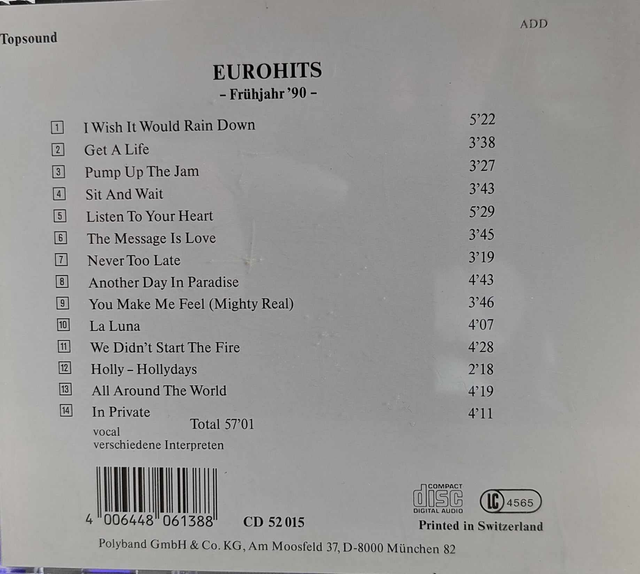 Eurohits-Frühjahr 90 Audio CD gut zustand