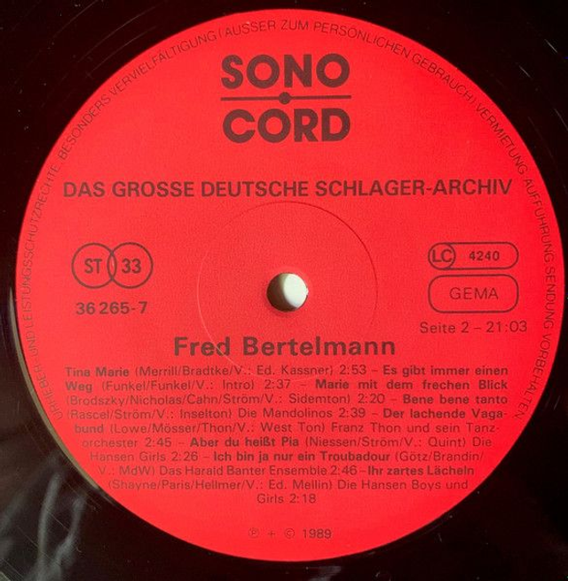 Graham Bonney / Fred Bertelmann ‎– Das Grosse Deutsche Schlager-Archiv Vinyl