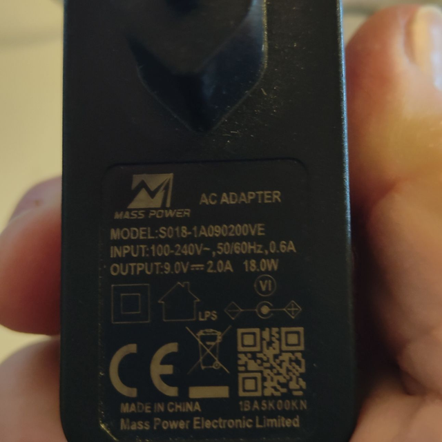 MASS POWER AC ADAPTOR S018-1A90200VE 9V-2A 18W