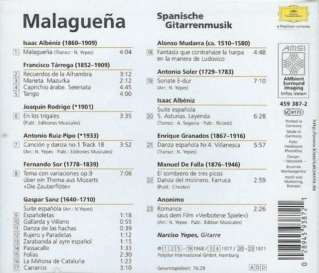 Narciso Yepes - Malagueña Audio CD