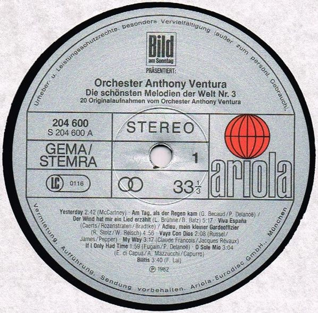 Orchester Anthony Ventura – Die Schönsten Melodien Der Welt Nr. 3 Vinyl