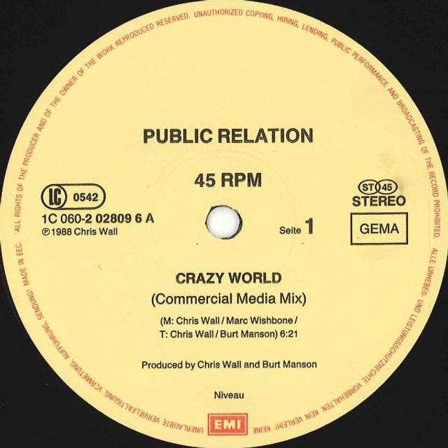 Public Relation* ‎– Crazy World Vinyl, 12", Maxi-Single, 45 RPM