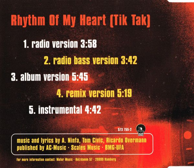 R'n'G ‎– Rhythm Of My Heart (Tik Tak) Audio CD