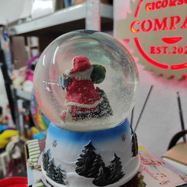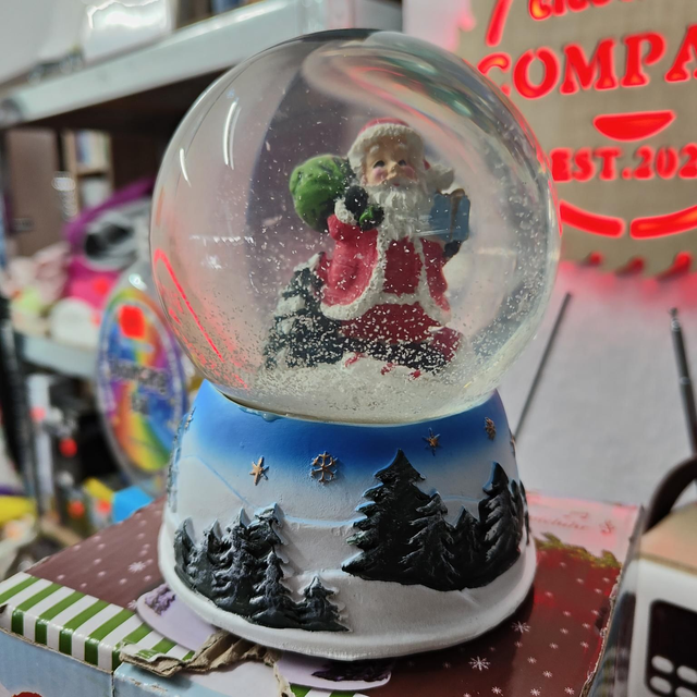Schneekugel Weihnachten Motiv: Santa/Weihnachtsmann LED mit spielhuhr