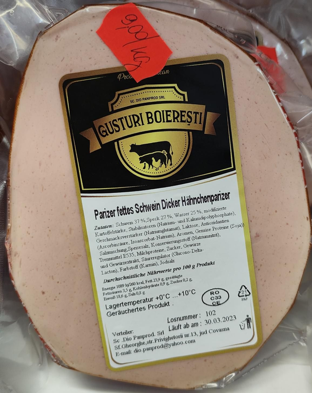 Schweinpariser Parizer de Porc Gusturi Boieresti 1KG. Pret/kg, vidat, portionat circca 500g