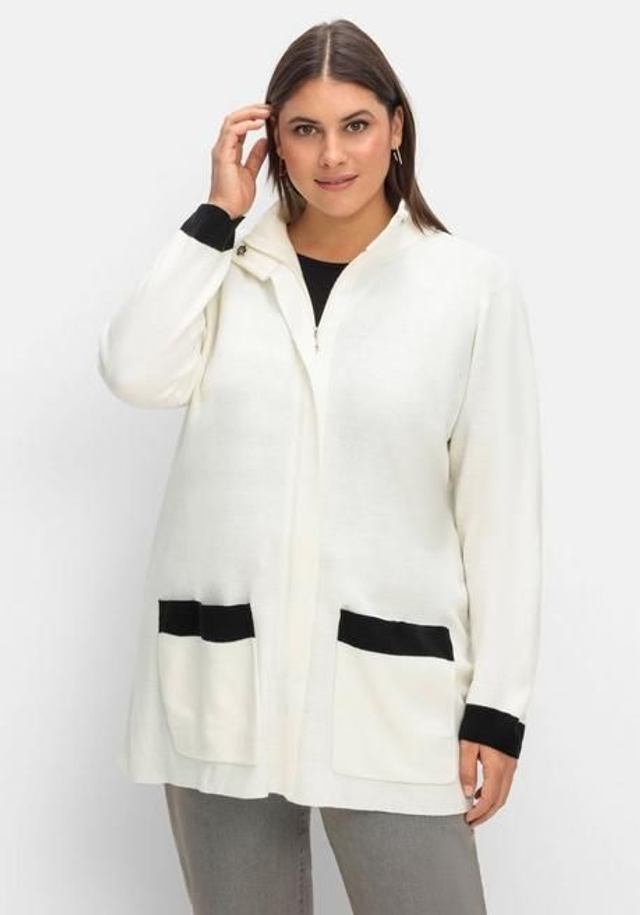 Sheego Strickjacke mit verdecktem Zipper und Kontrastdetails GR. 56