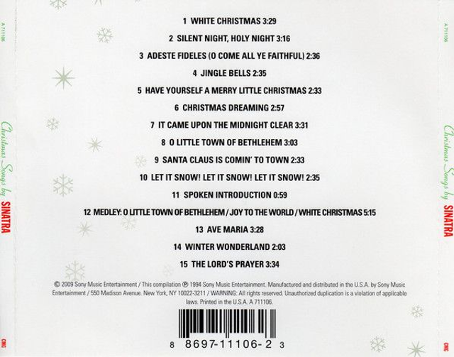 Sinatra* ‎– Christmas Songs By Sinatra Audio CD