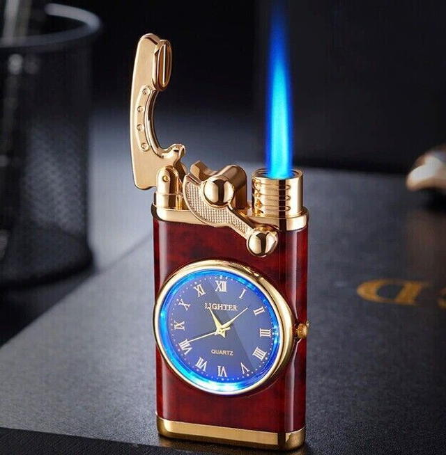 Stylische Gasfeuerzeug mit Analog Uhr und LED Licht verschieden modelle