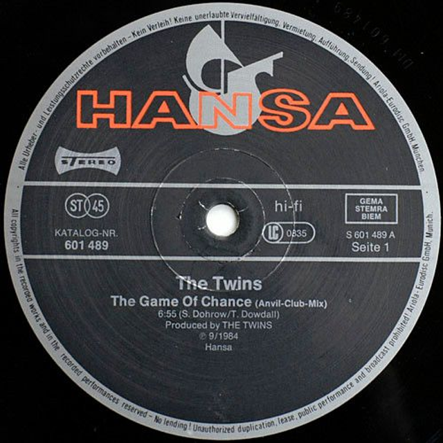 The Twins ‎– The Game Of Chance Vinyl, 12", Maxi-Single, 45 RPM