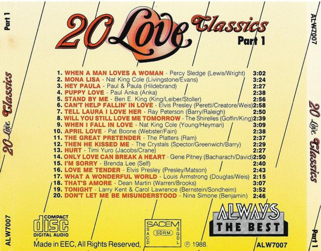 Various – 20 Love Classics Part 1 Audio CD