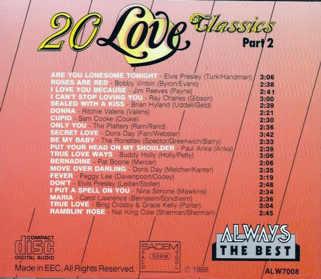 Various ‎– 20 Love Classics Part 2 Audio CD