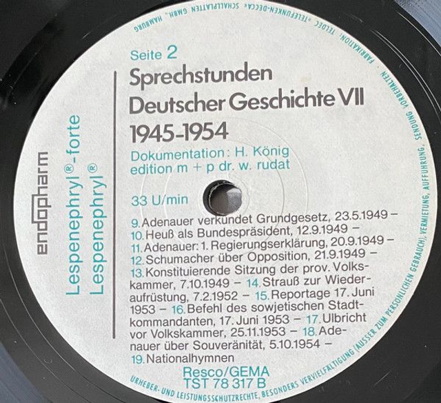 Various – Sprechstunden Deutscher Geschichte VII 1945 - 1954 Vinyl, 7"